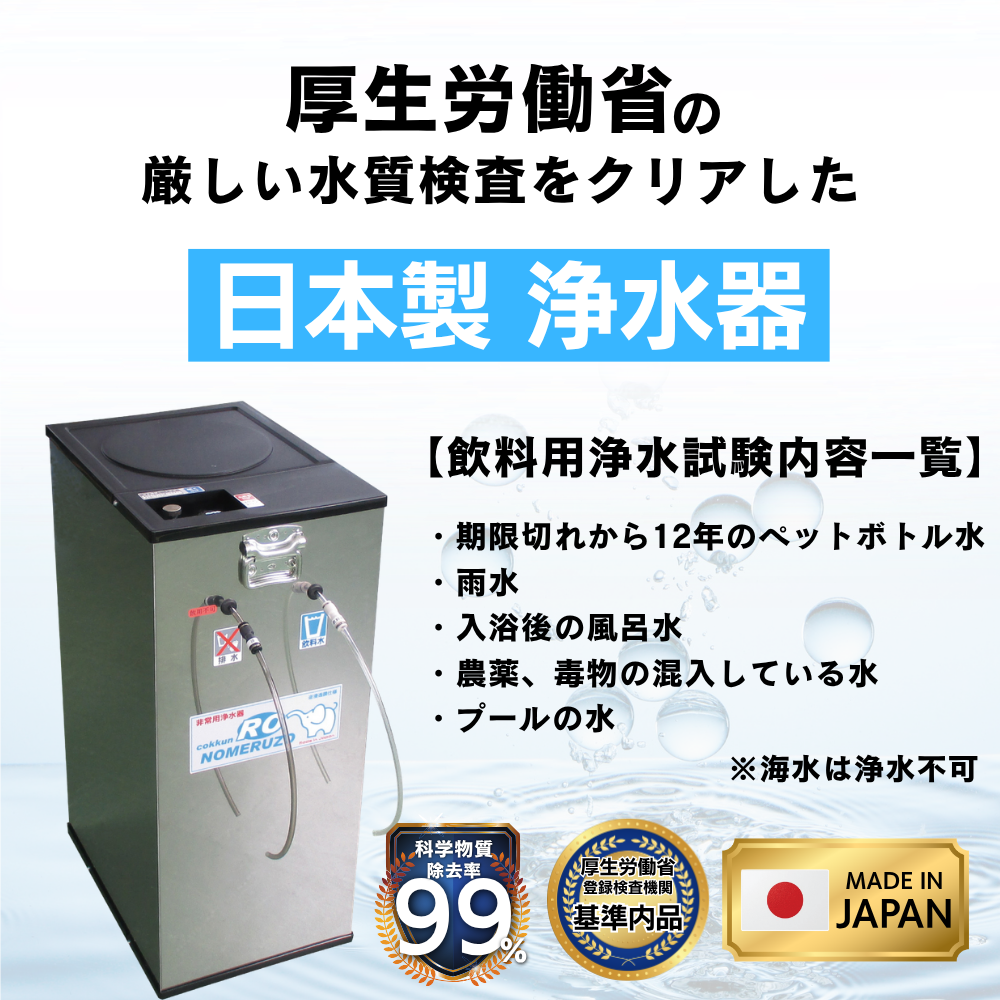 高品質な日本製で安心して飲料水の確保が可能です。