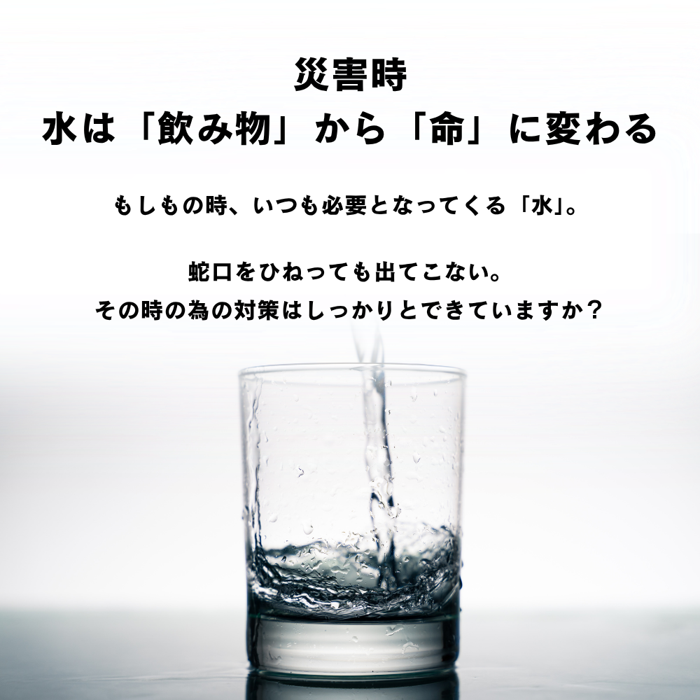 災害時、被災時に真っ先に困るのは防災観点での「飲み水の確保」です。