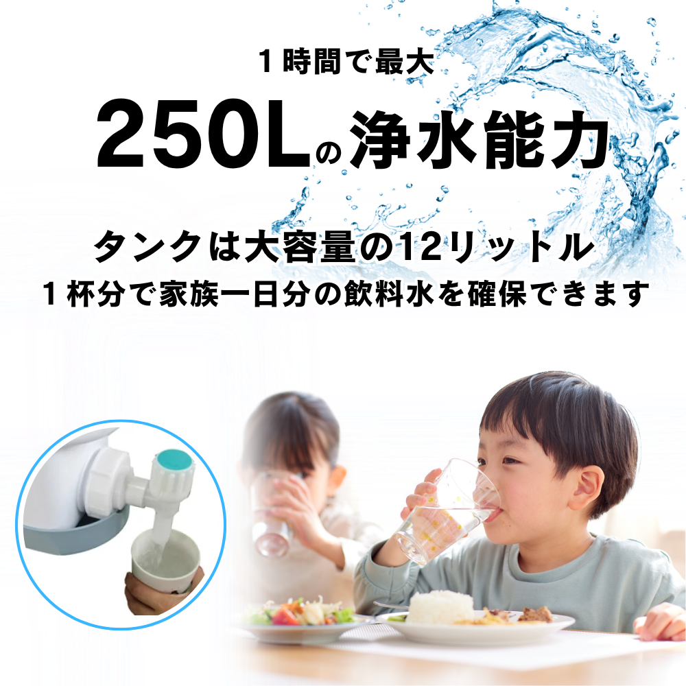 いつでもきれいな飲料水を確保できます。