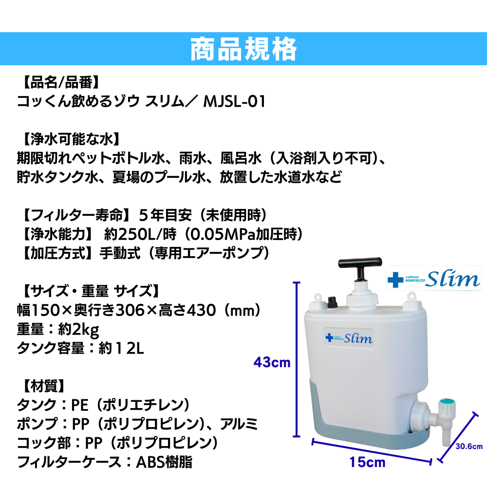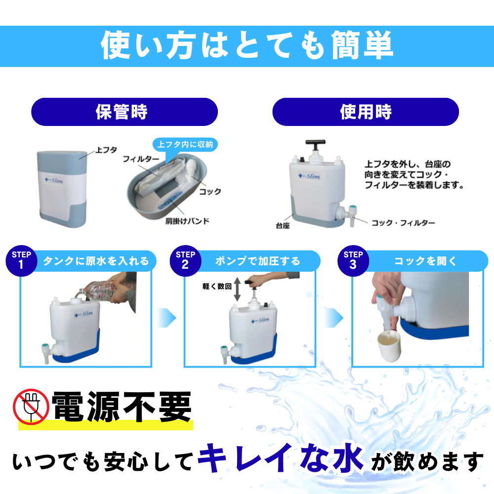 【検索用ワード】 防災 災害 備蓄 防災備蓄 浄水器 手動 飲料水 キャンプ アウトドア キャンピングカー コンパクト